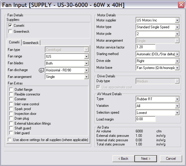 Fully configurable fan selection software